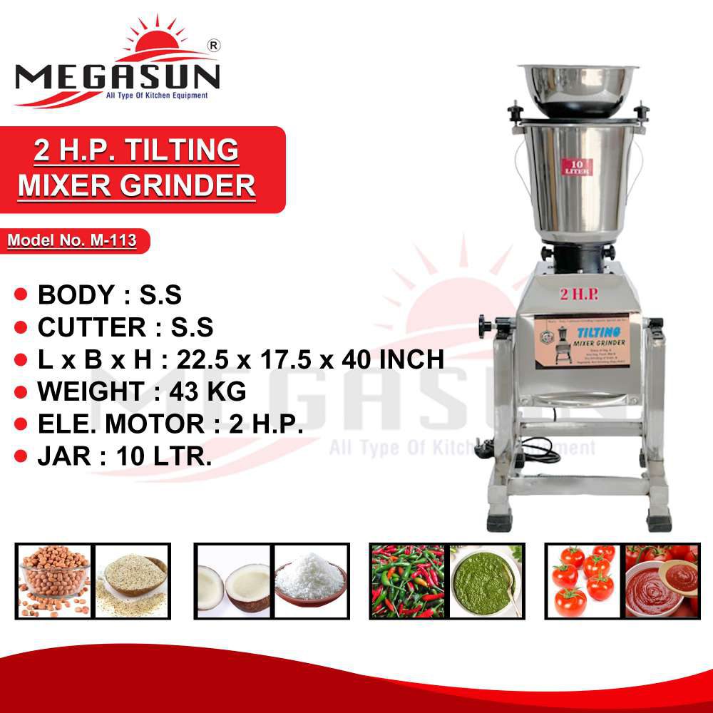 The 2 HP Mixer Grinder Tilting features a powerful 2 HP motor and a convenient tilting mechanism for effortless operation and pouring. Designed for heavy-duty grinding and blending, this mixer grinder ensures consistent and efficient performance. Its durable construction and tilting function make it ideal for both commercial kitchens and demanding home use.