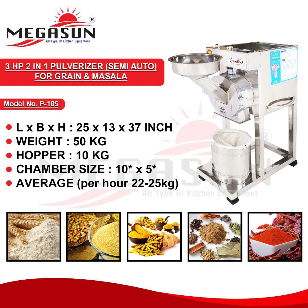 The 3 HP 2 In 1 Pulverizer (SEMI) features a powerful 3 HP motor for efficient and versatile grinding and pulverizing. Designed for semi-automatic operation, it offers reliable performance and control, making it suitable for both commercial and industrial applications. Its robust construction ensures durability, and its user-friendly design facilitates easy operation and maintenance.
