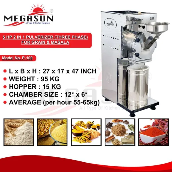 The 5 HP 2 In 1 Pulverizer (Three Phase) Premium Model is engineered for heavy-duty grinding and pulverizing tasks. Equipped with a powerful 5 HP motor and three-phase power, this premium model delivers high efficiency and consistent performance. Its durable construction and advanced features make it ideal for industrial and large-scale commercial applications, ensuring reliability and ease of operation.