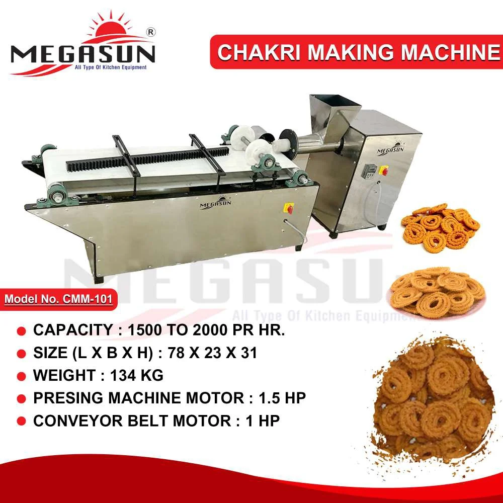 The Chakri Making Machine is designed for efficient production of chakri (a popular snack). It automates the process of mixing, extruding, and shaping chakri, ensuring consistent quality and texture. Ideal for commercial kitchens and snack production facilities, this machine enhances productivity and streamlines operations with ease.